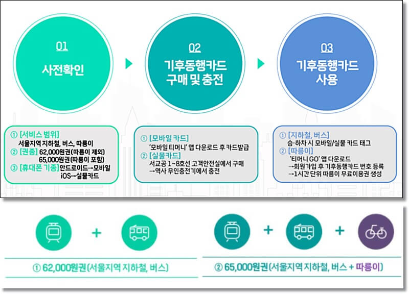 - 65,000원 : 서울지역 지하철 + 버스 + 따릉이