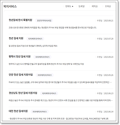 ● 복지로 홈페이지에서 각 지자체별 청년월세지원 사업을 한눈에 볼 수 있습니다.